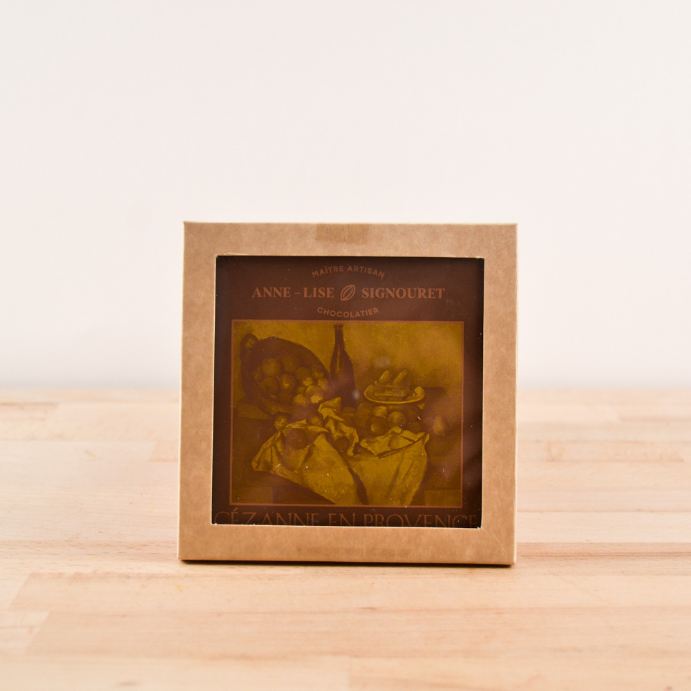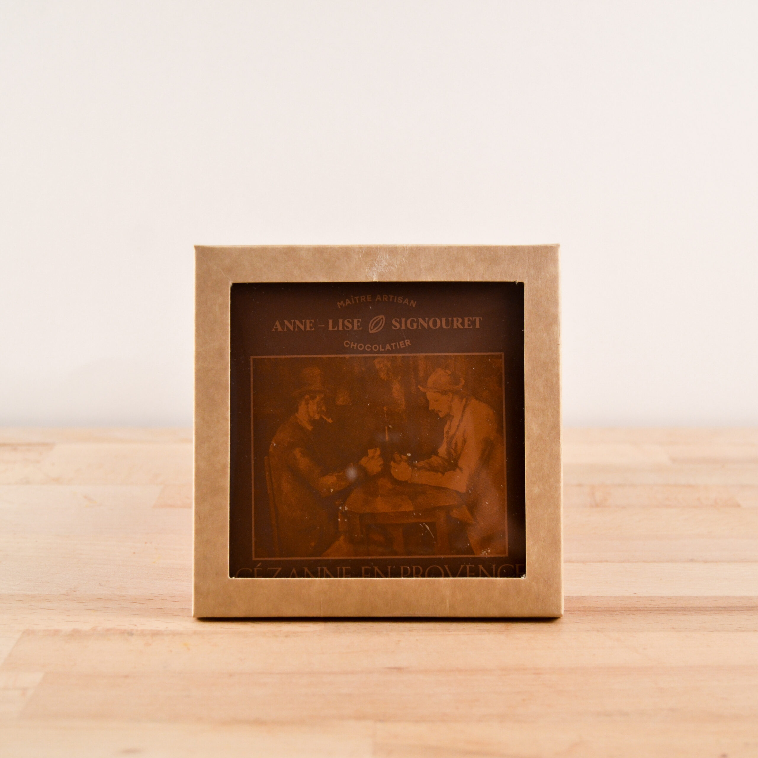 Ces cartes en chocolat sont le fruit d’un savoir-faire artisanal et d’une passion commune pour l’art et la gourmandise. Cet hommage à Paul Cézanne, figure emblématique de notre chère Aix-en-Provence nous tenait à cœur.