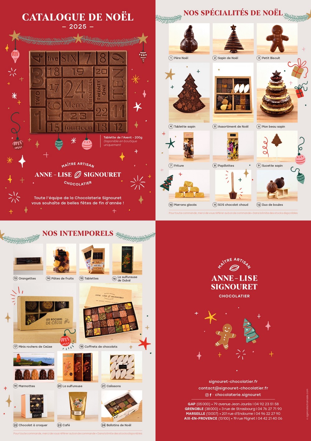 Pour le bon de commande, merci de contacter directement M. Hugo Da Silva par mail à contact@signouret-chocolatier.fr, ou par téléphone au 06 50 84 95 07.